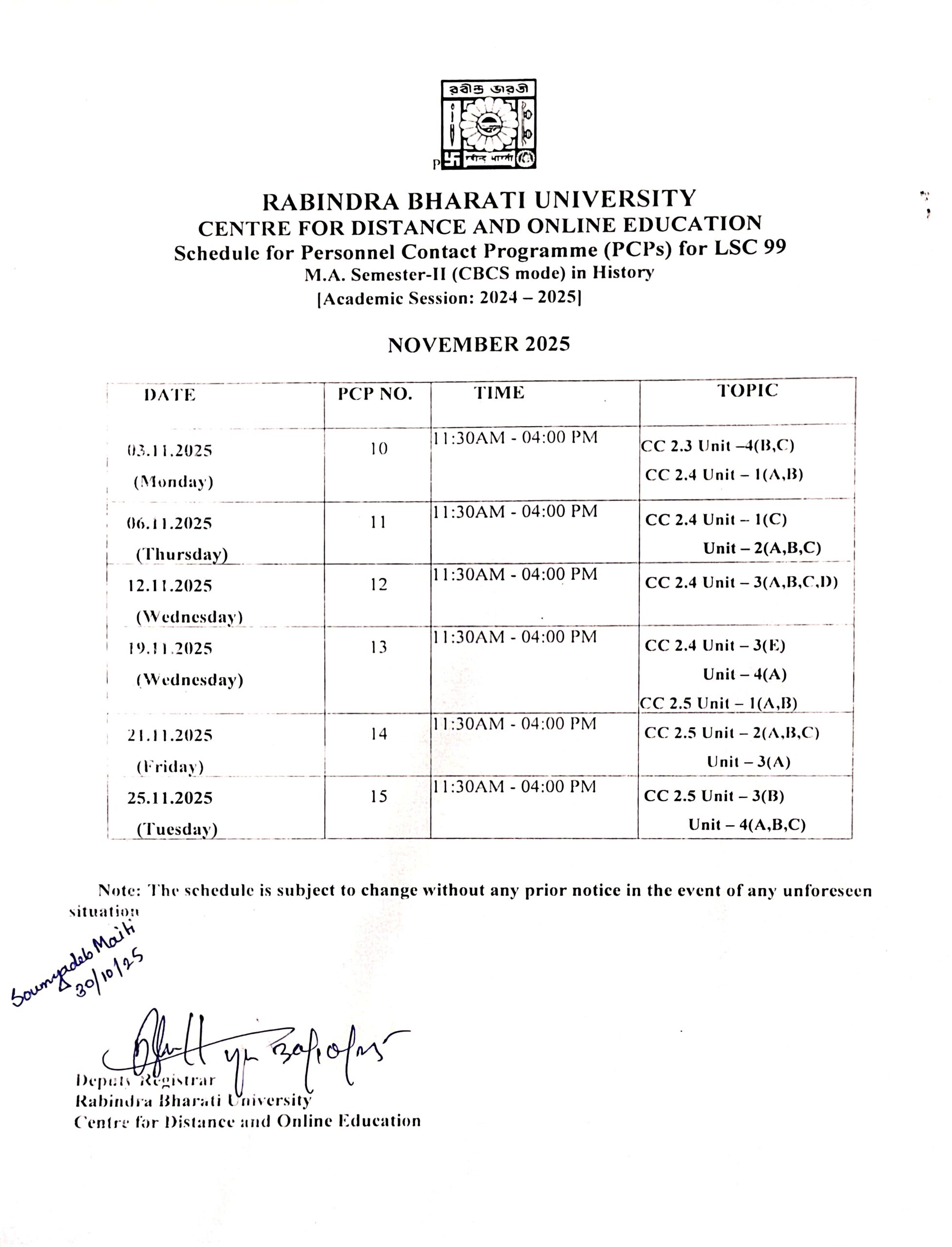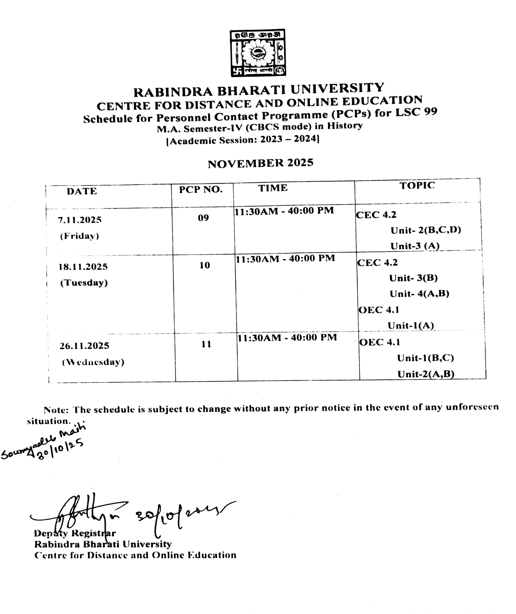 | PCP schedule of M.A. in Rabindra Sangeet, sem II, 2024-25 | Download | 01 Nov 2025 |
